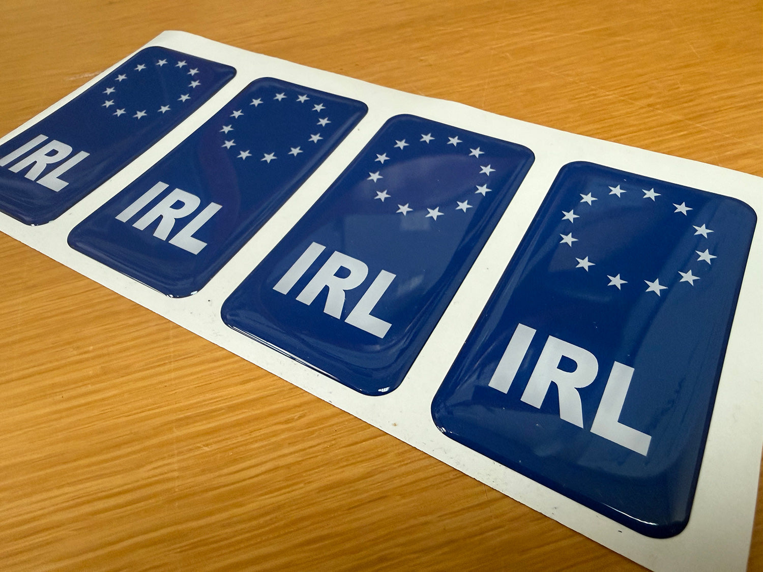 94x48mm Sporty Irish Gel Badges/Flags for Standard Number Plates