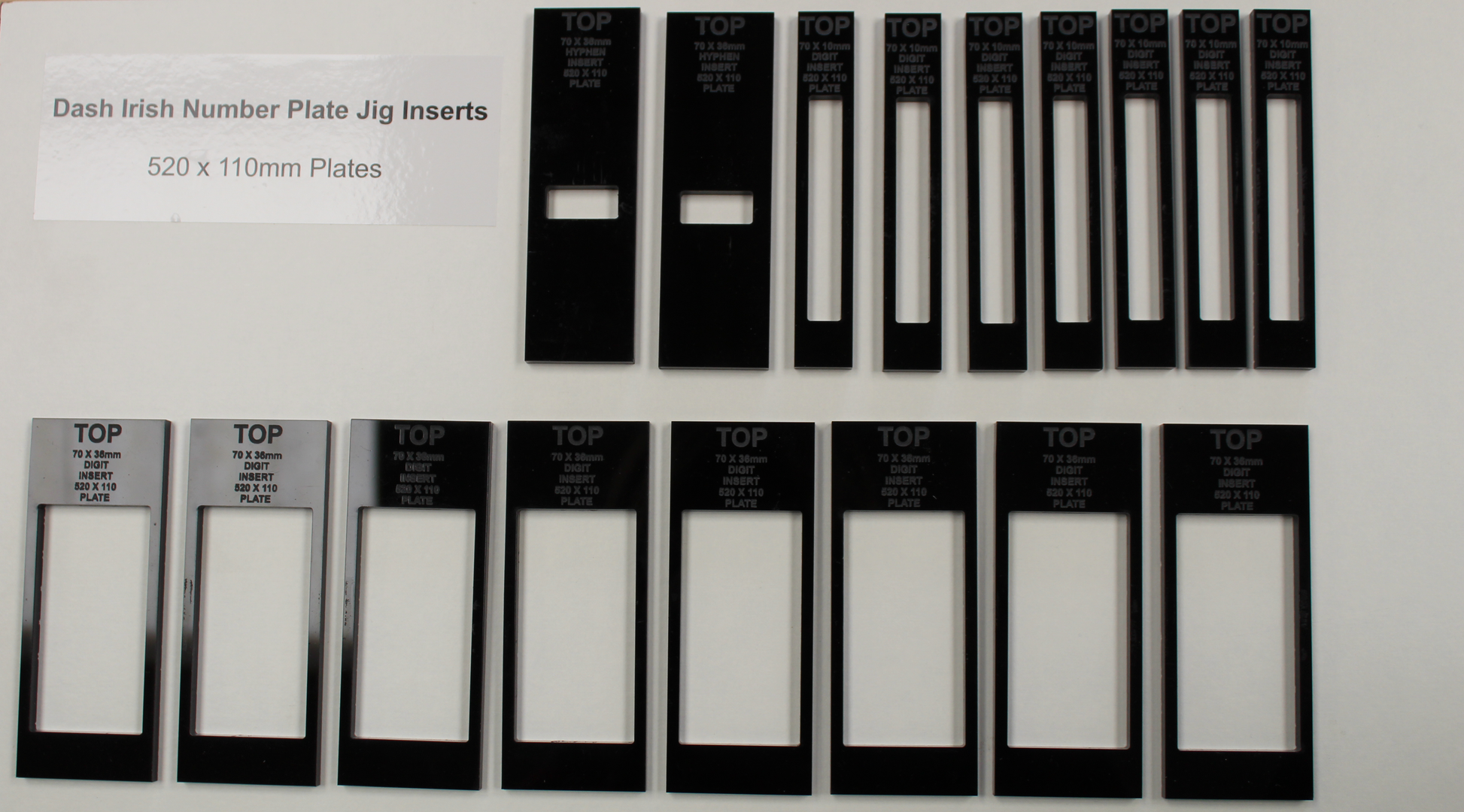 This jig is used for producing 70 x 36mm Irish style number plates with 3D gel or 4D style letters.