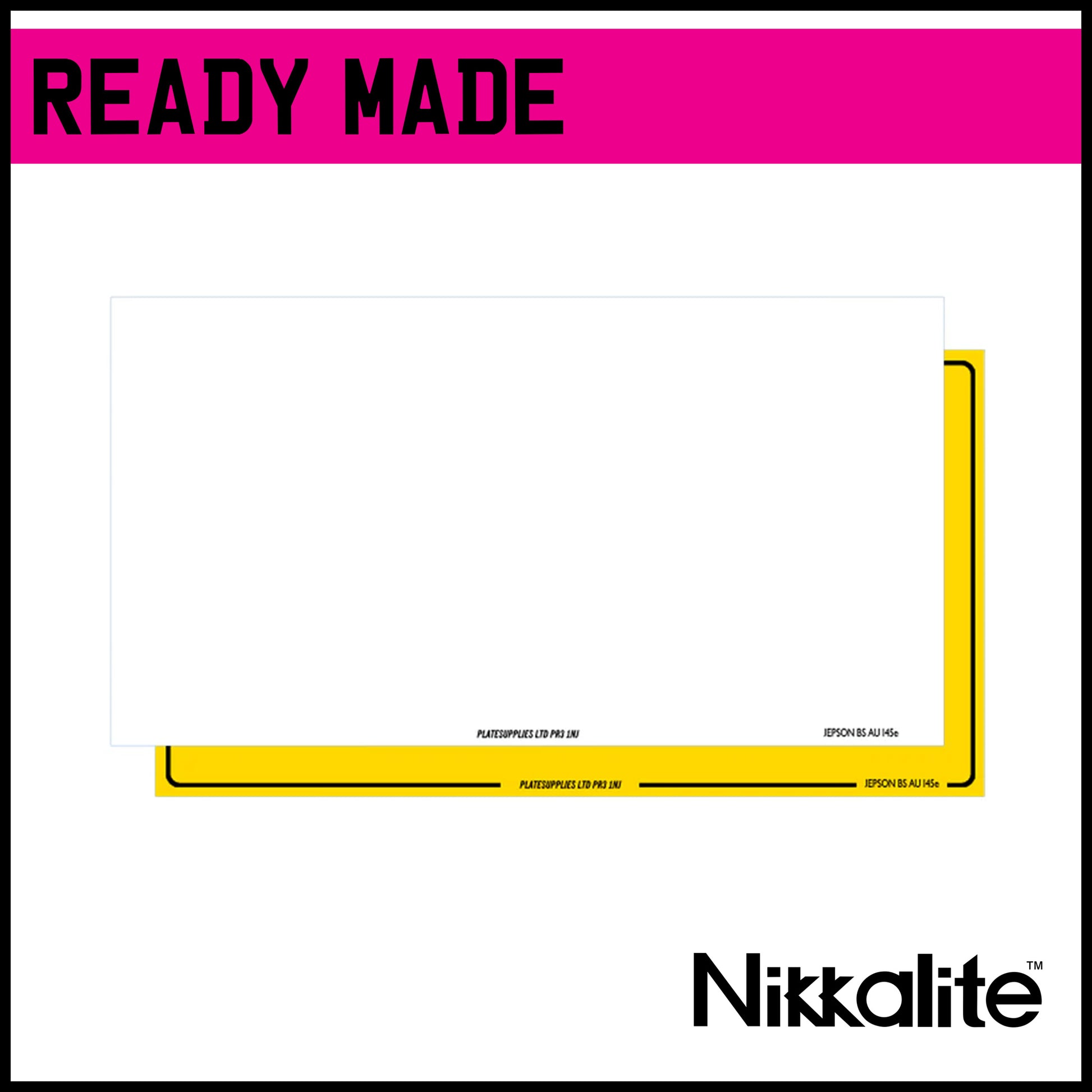 Ready made Japanese import plate in white or yellow. Available with legal detail and BS tag, with a border or offset border for flag.