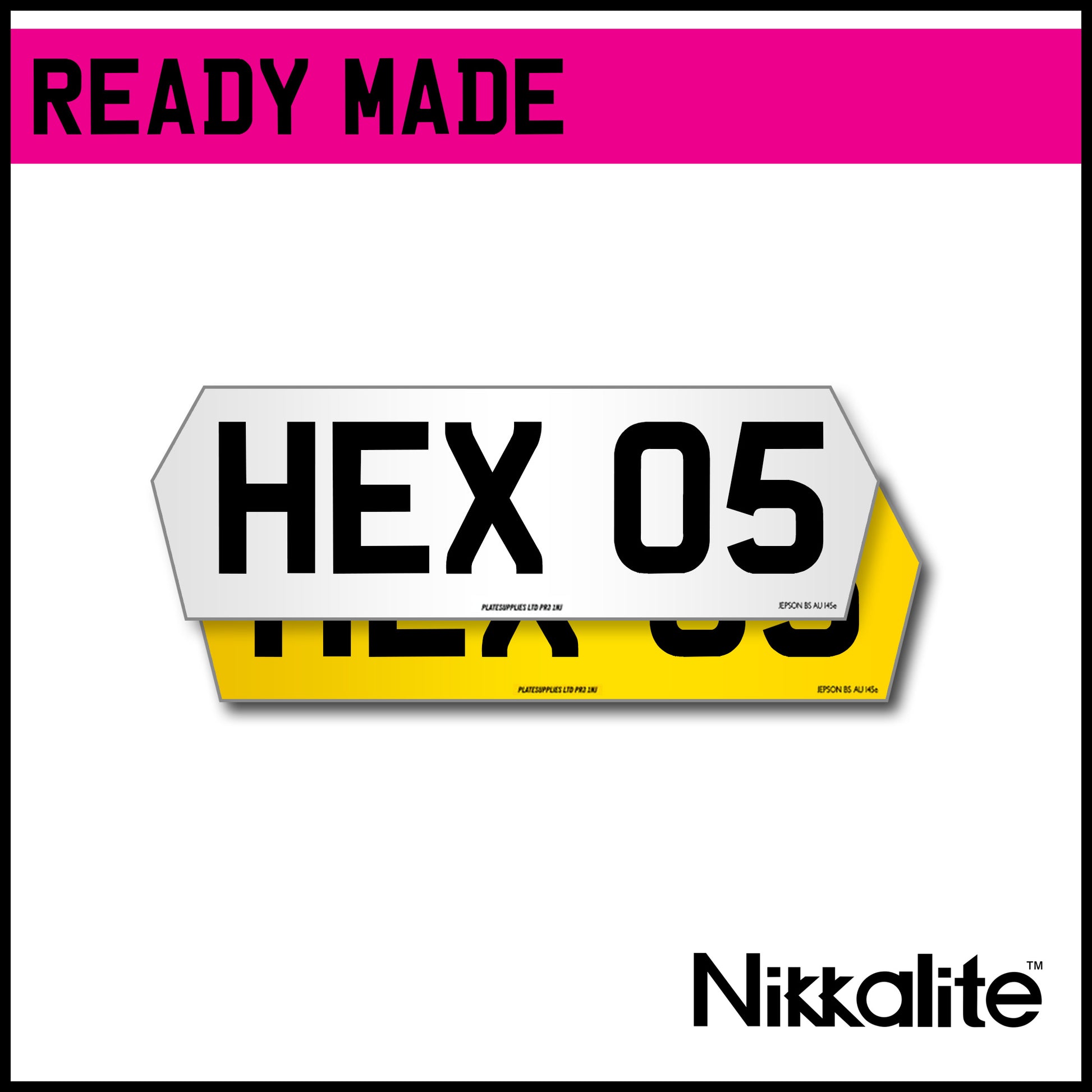 Ready Made Hex Number Plates. Available with legal detail and BS tag.