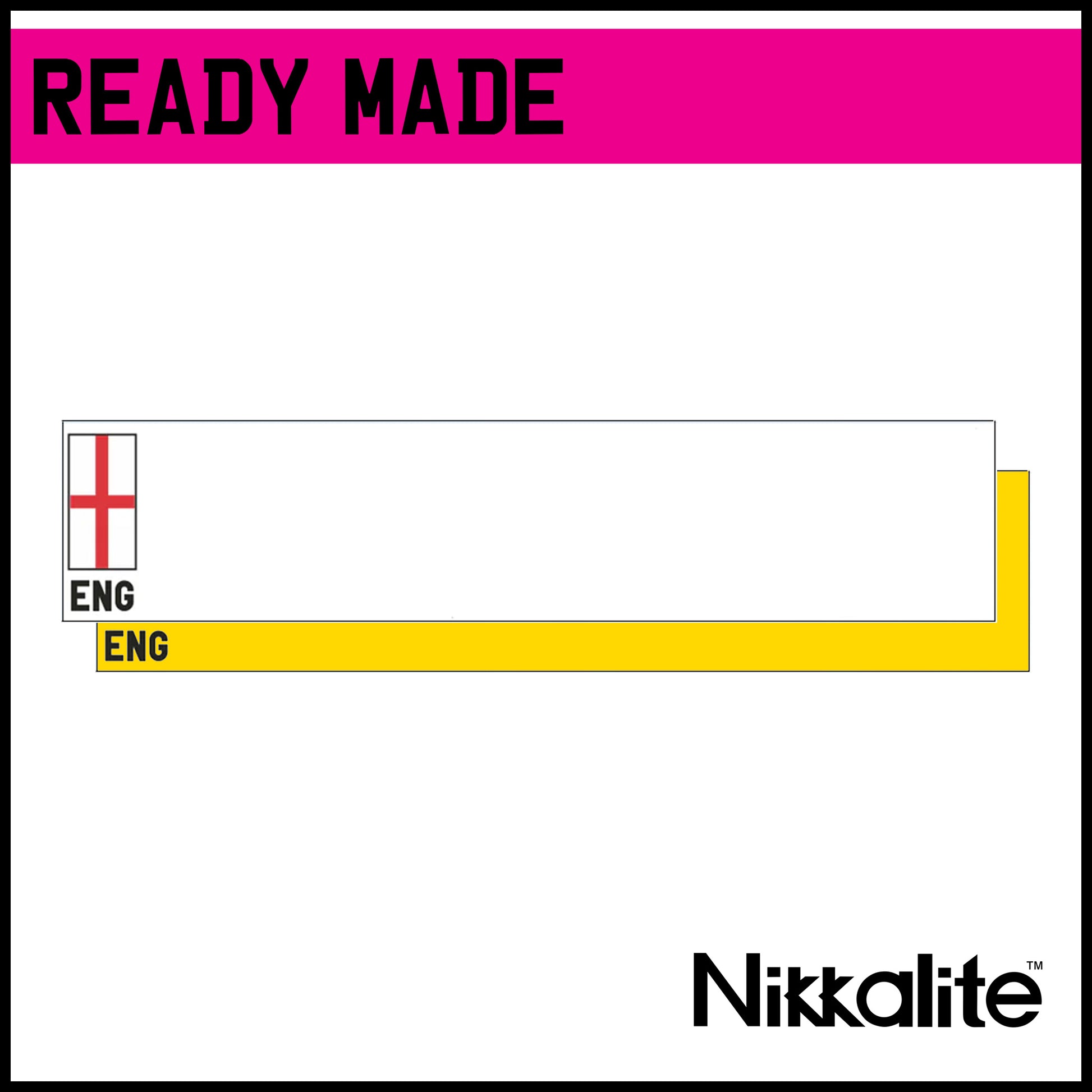 Ready made standard oblong number plate in white or yellow with the St George's Cross ENG identifier. Available with legal detail and BS tag, or with a border.
